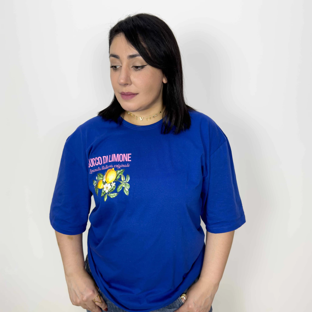 Camiseta Feminina Oversized Succo Di Limone Azul Royal